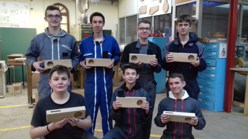 Les élèves de 3ème prépa-pro ont terminé le projet « enceinte acoustique passive pour smartphone ».Cette fabrication leur a vraiment plu.