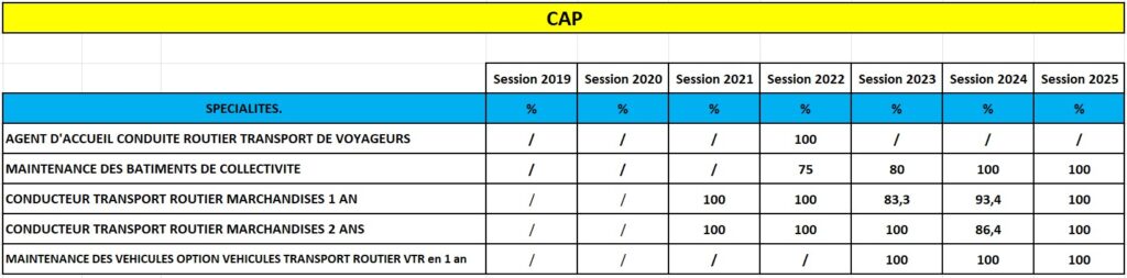 Taux de présentation aux examens 100% sur l’ensemble des formations